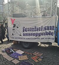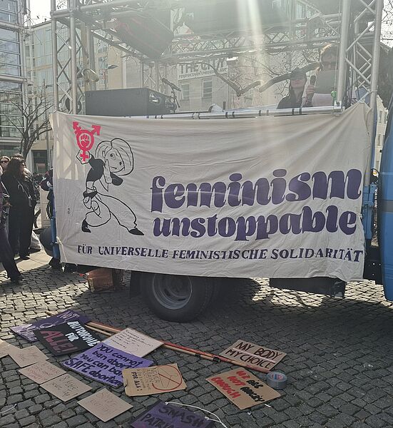 Kampf für Gleichberechtigung, gegen diskriminierende patriarchale Strukturen und für ein selbstbestimmtes Leben von Frauen* weltweit.